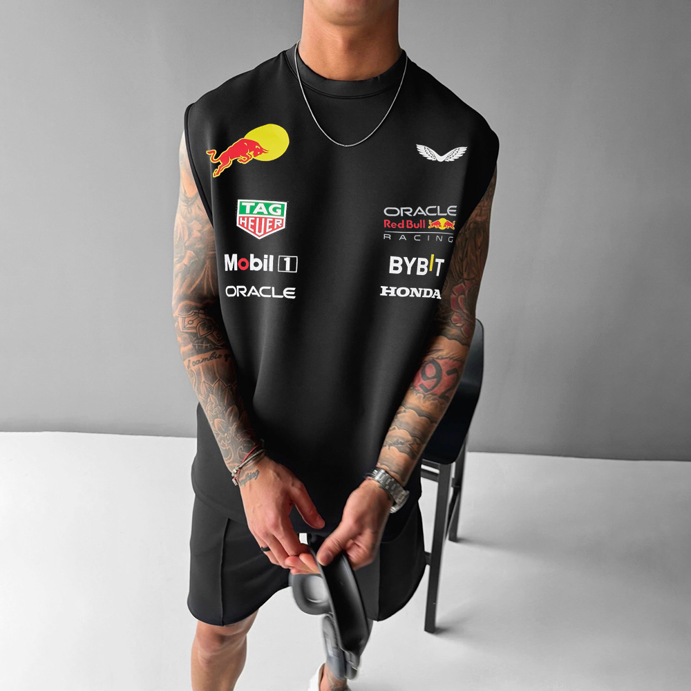 Oversized Unisex Racing Print Sleeveless T-shirt