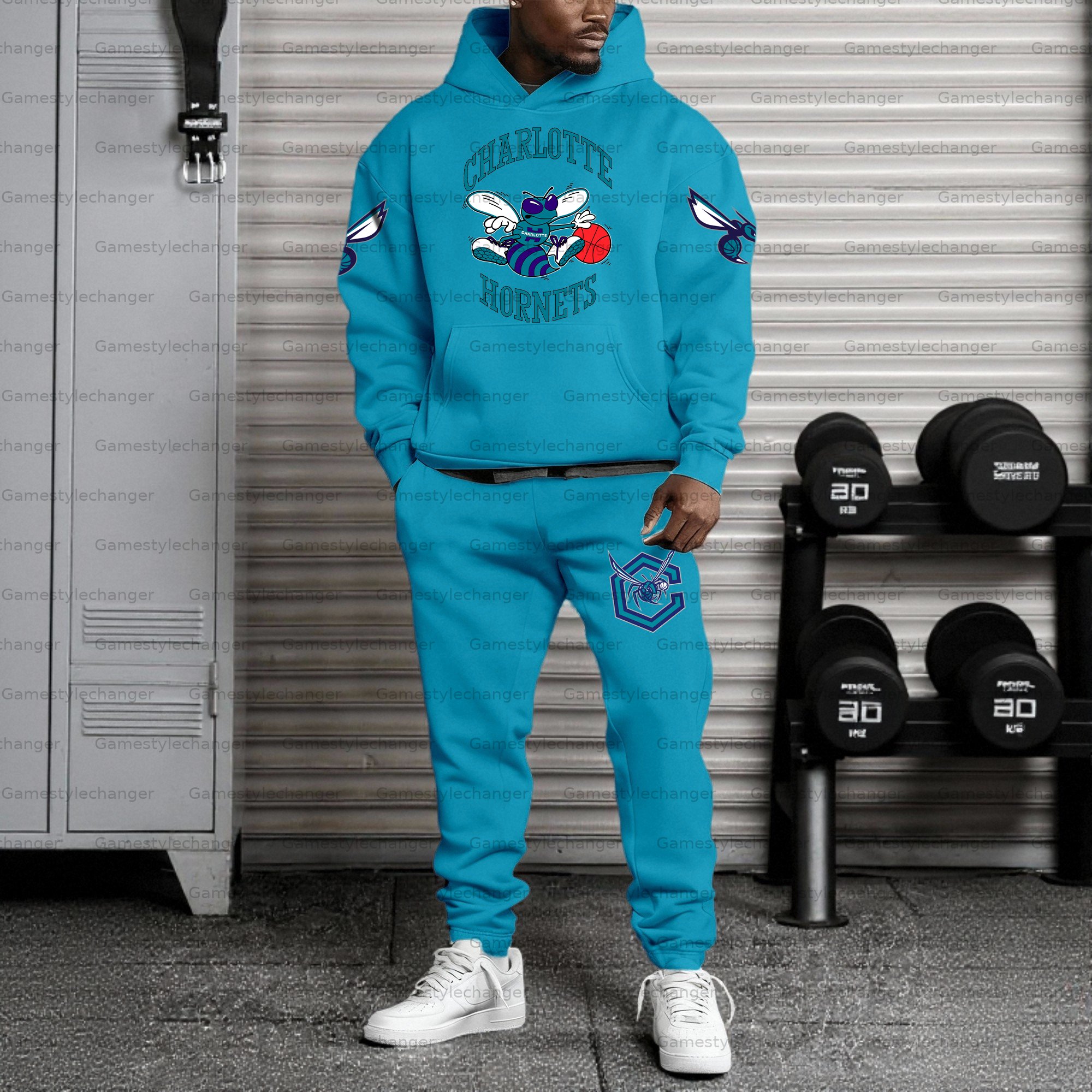 (Fleece-Lined Hoodie) ”Charlotte Hornets“3D Printed Pullover Hoodie And Sweatpant 2pcs Tracksuits